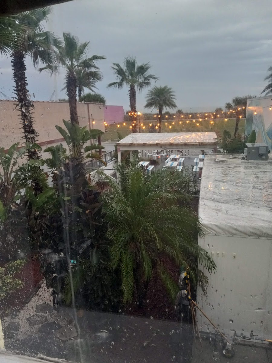 I visited a minister who was staying here and he said that they gave him a great rate for the week. Each room has a window air conditioner and it's definitely welcome on hot summers in Florida. The bed is very large and the bathroom is perfect for a single person or small couple. His particular room was hidden behind large palms and the courtyard is pleasantly arrayed with tables and chairs. The access to the courtyard is protected by a coded lock and each room uses a traditional key. Parking can be tricky but I could find options on the street in the afternoon. The beach is literally a short walk, maybe a block from the hotel. There's a park across the street with an amphitheater between the hotel and the beach. There's a cute coffee shop adjacent to the hotel and several great watering holes and restaurants within a brief walking distance as well. A brand new restaurant, Oaxaca Mexican Restaurant, is next door and looks very pleasant.